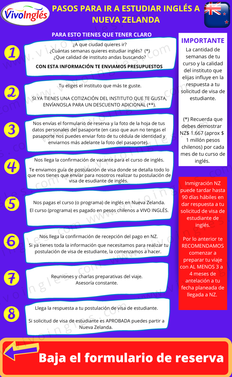 Ideal comenzar tus preparativos MÍNIMO 12 semanas (3 meses) antes de tu fecha planeada de entrada a Nueva Zelanda.